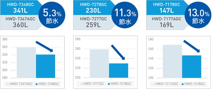 「ウルトラファインバブル」により洗浄効率・すすぎ効率が向上したため、少ない使用水量で従来機種と同等の洗浄・すすぎ性能を維持することができました。