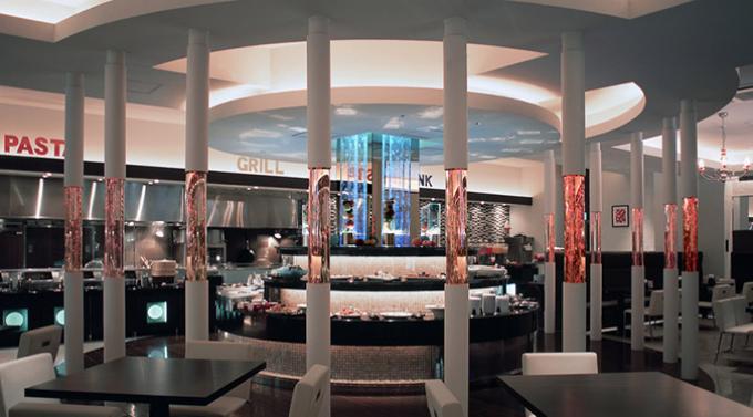 円筒型・角柱型水槽は自由にサイズを選べます。既製品よりも細やかなディテールに対応が可能なアクアポール(円筒形水槽)は、O口径、高さはもちろん、数量、ライティングにより多彩な表現が可能となります。アクアクリーン液を併用することにより、メンテナンスの軽減が可能です。