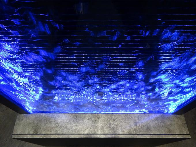 また、アクリルの壁をなだらかに水が流れるので、見る人の目に留まる幻想的な印象に残る演出が可能です。