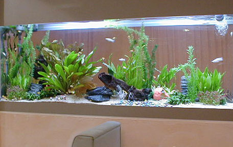 ・まるで水族館の展示のよう!水槽の魚はもちろん、水草の鮮やかな緑も空間のアクセントに抜群です!