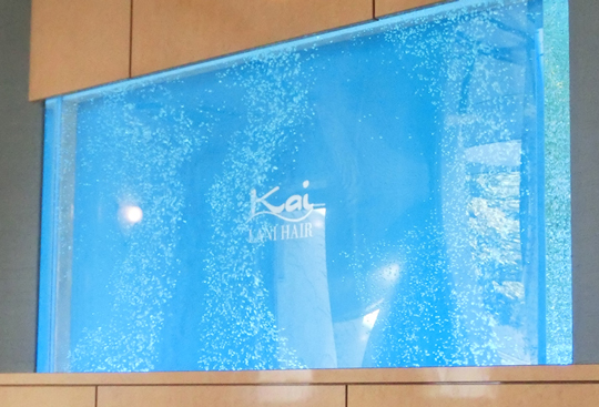煌めきながら上ってゆくエアーはまるで宝石のよう。透明なアクリル水槽の下から湧き上がるライティングされた気泡は、見ているものをまるで海底にいる気分にさせてくれます。