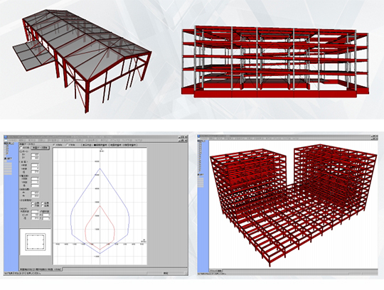 ビル建物からブランド構造物、橋梁といったあらゆる構造種別に関しても荷重計算から応力計算、保有耐力計算、計算書作成までの一貫計算が建物構造を自由自在に楽しくイメージすることを支援いたします。