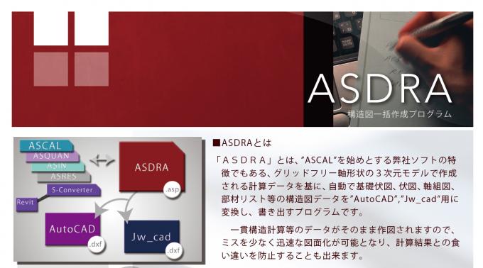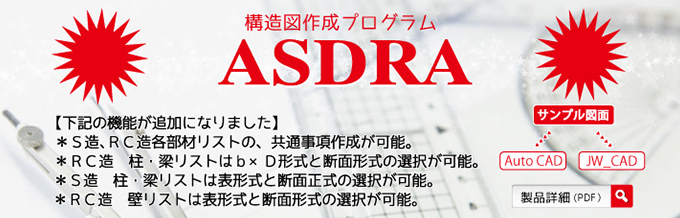 株式会社アークデータ研究所より、構造図面作成プログラム『ASDRA』のご紹介です。
