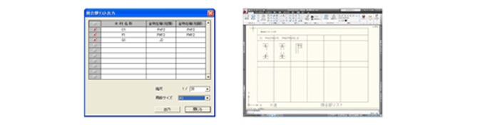 画像:部材リスト出力画面(左)、部材リスト(右)