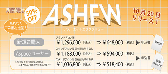 ◆壁式ラーメン鉄筋コンクリート造『一貫構造計算プログラム』≪ASHFW≫ 10月中旬ニューリリース!! 50%OFF 詳細はこちらから