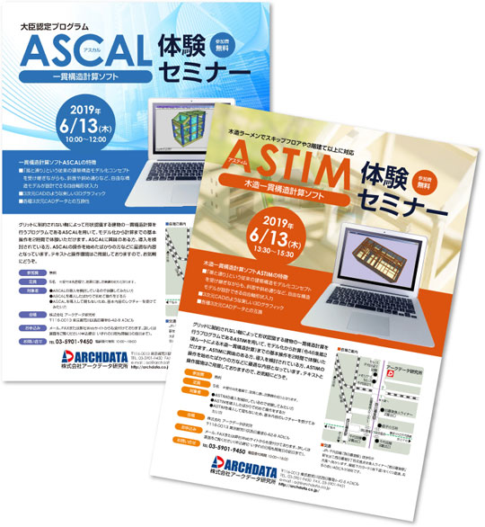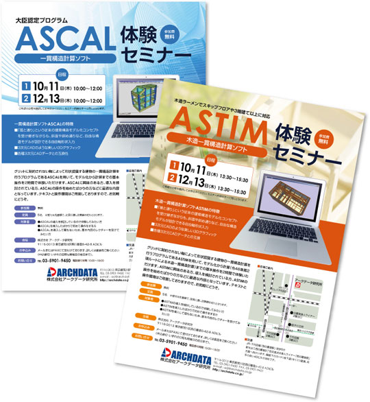 一貫構造計算プログラム「ASCAL(アスカル)」体験セミナー木造一貫構造計算プログラム ASTIM(アスティム)セミナーのご案内
