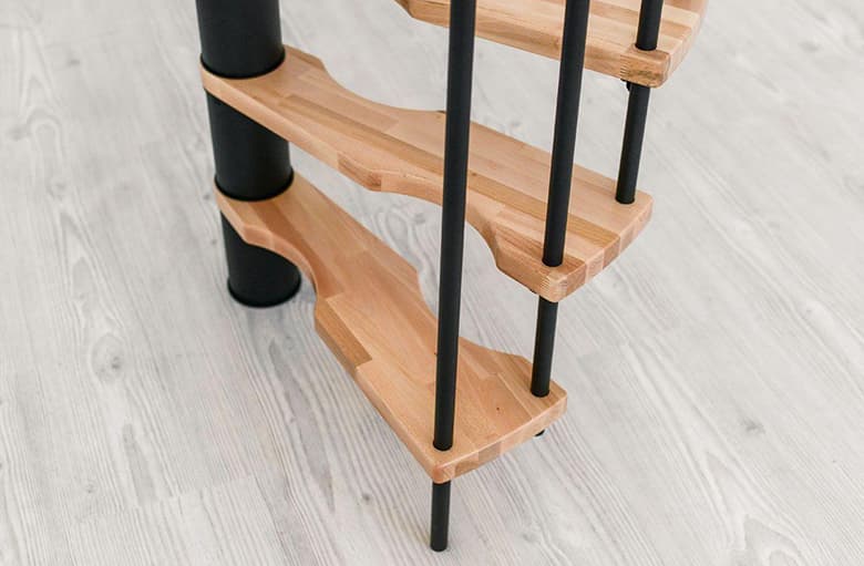 ステップはブナ材、金属部分は黒、グレー、白の粉体塗装