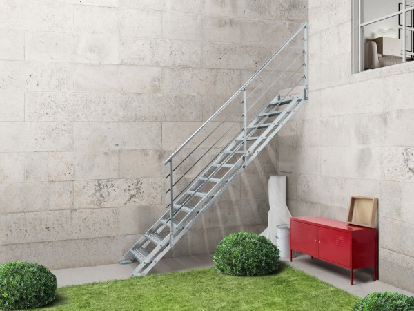 防錆に強い亜鉛メッキで仕上げたシンプルな屋外用オープン階段です