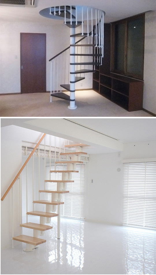 らせん階段やオープン階段、ロフトなどにぴったりのコンパクト階段がございます。