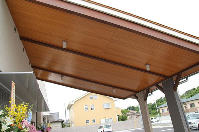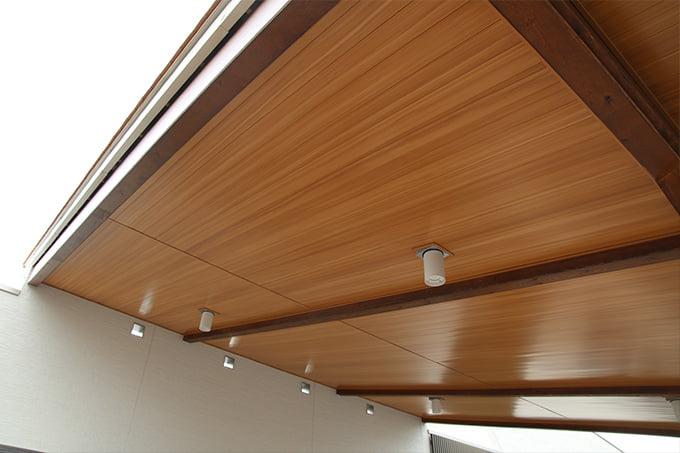 ナチュラルな木目のスパンドレルは、屋外でのデザイン性を発揮します。