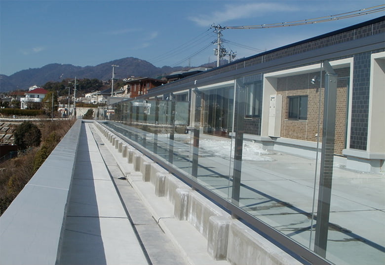 フラットな仕上がりの目隠しパネル手すり