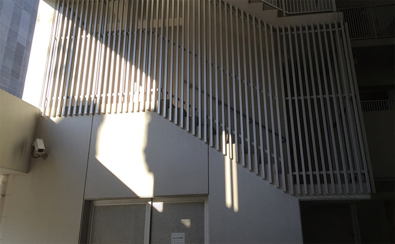 エッジの効いた重厚な外観と、適度な通気でバルコニーの快適さを確保