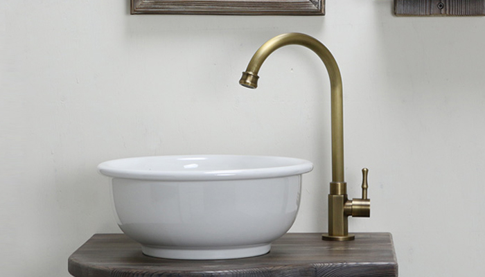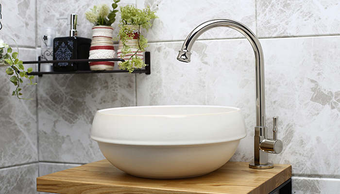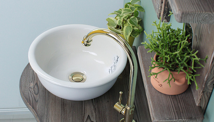 ■ベッセル型(置き型)手洗いボウル用に設計されたスワン型の単水栓。