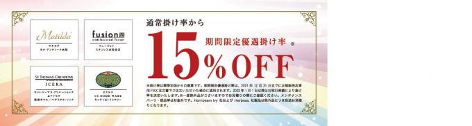 「ご好評につき延長決定!」卸売価格からさらに15%OFF!お得な20周年キャンペーン