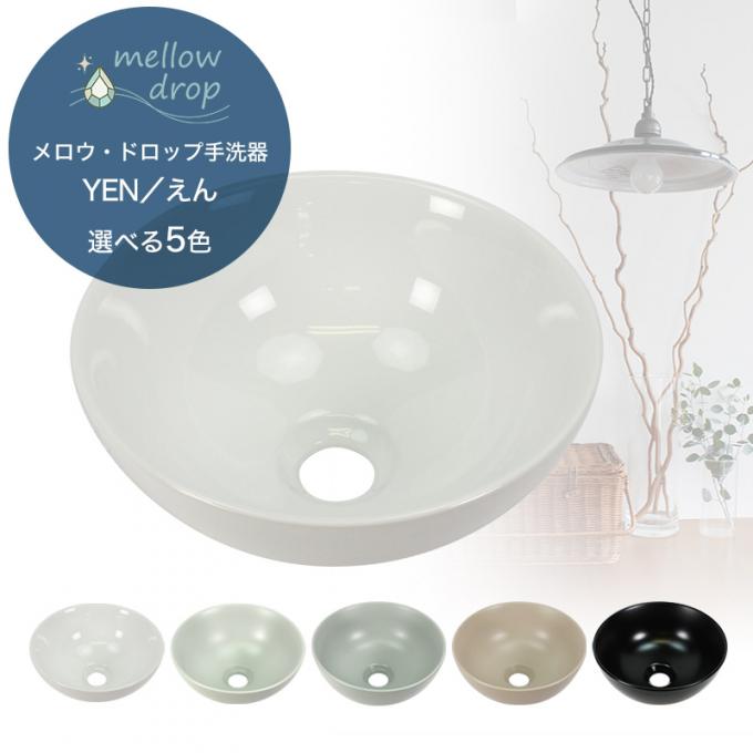 真ん丸い形のYEN手洗い器。シンプルで可愛い省スペース向けの洗面ボウルです。 インテリアに馴染みやすくも主張しすぎず、そっとアクセントを添えてくれるカラーが5色から選べます。