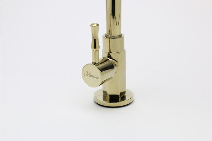 マチルダ水栓は、真鍮(黄銅)の素地に経年変色を防ぐ美しく強靭な5種類のめっきが施されており、何年経っても美しい輝きを保つことができます。※設置環境やお手入れの状況によって異なります。