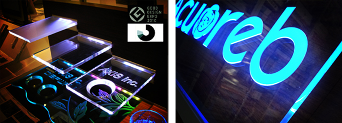 AXIS株式会社より、LEDによる光る透明棚板・案内板のご紹介です。