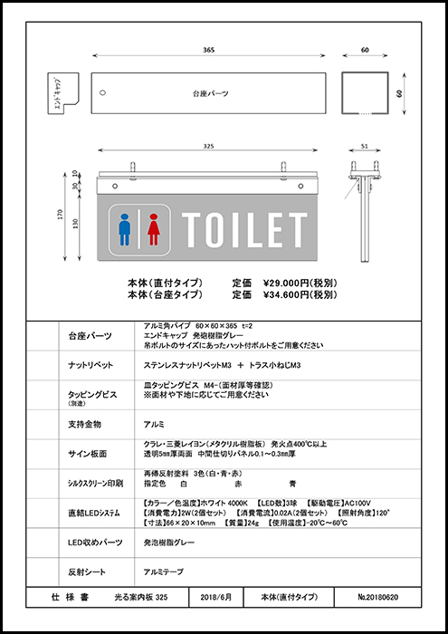 部品点数が少なく、取付けが簡単で、シンプルな「光る案内板」