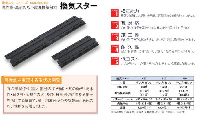 ◆高性能・高耐久な小屋裏換気部材『換気スター』