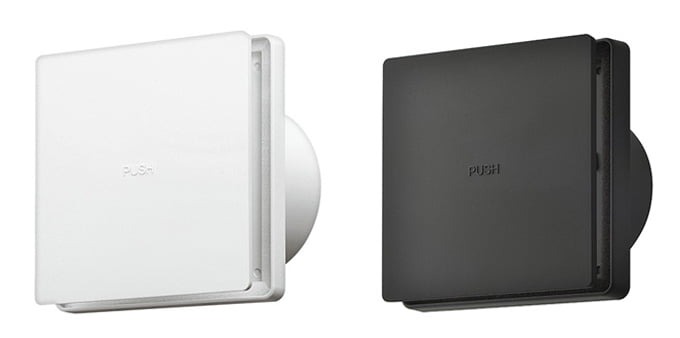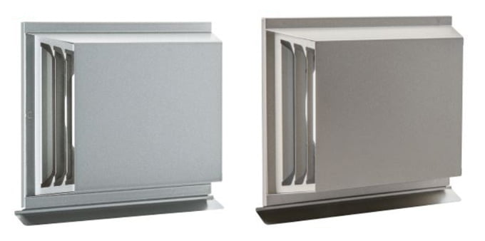 壁からの出っ張りが少ない、超薄型のスリムフードで建物の美観を損なわないスマートなデザインです。開口部が両サイドですので、下からの吹き上げに強く雨の浸入を低減します。