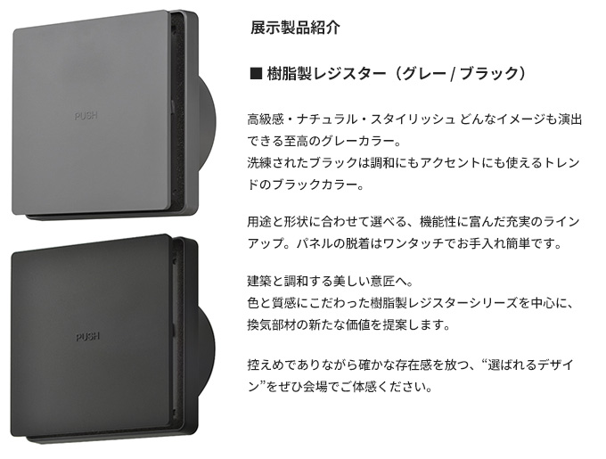 建材ナビ・スタッフからのコメント 建築・建材展2026は、2026年3月3日(火)〜6日(金)の4日間に渡り東京ビッグサイトで開催されます。展示会では、グッドデザイン賞も受賞したデザイン性と耐雨性に優れた製品が展示されますので、ご来場の際はバクマ工業のブース(小間番号 : AC2229)へお越しください!
