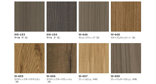 自然な表情が特徴のラスティック木目など様々な木目を表現。
