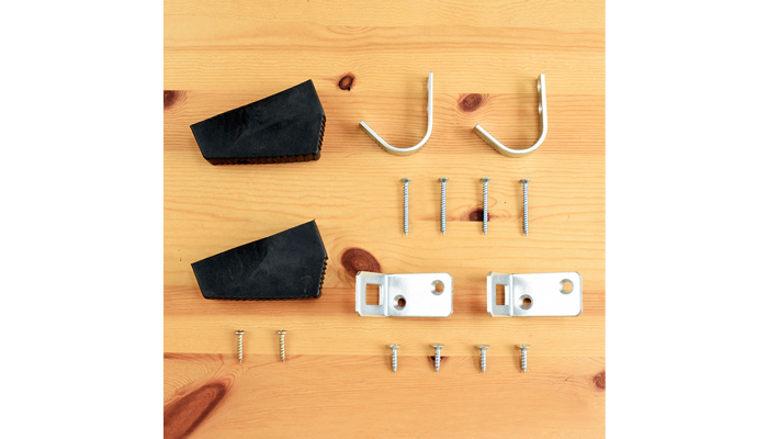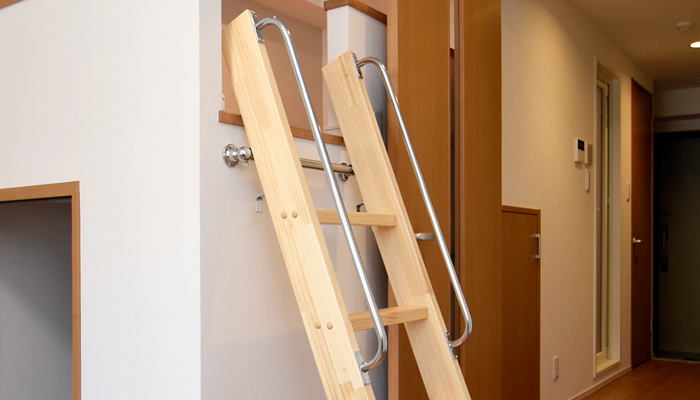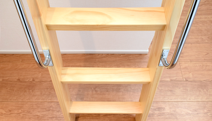 また金具一式揃ってすぐに使える【金具フルセット】や、フックをかけ直すだけで、その場で垂直収納ができる【収納セット】など、セット内容もロフトはしごによってさまざま。