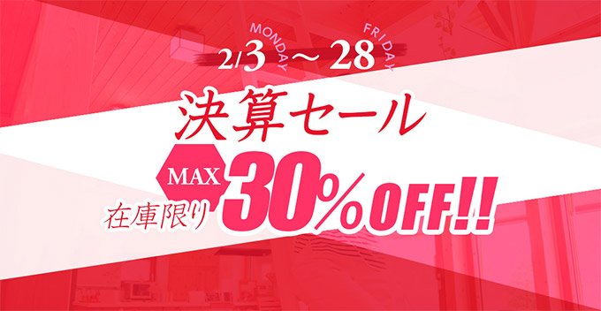 決算セール開催中!2月28日(金)23時59分まで3店舗同時開催!