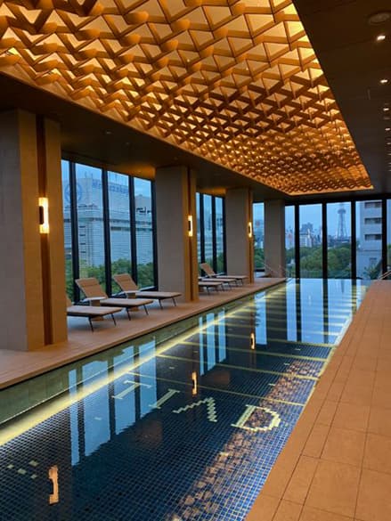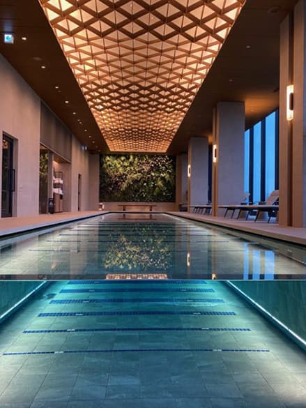 出典:株式会社ビベル建材ナビ・スタッフからのコメント 軽量で存在感のある吸音バッフルであるソフトサウンド。今回ご紹介したプールや、オフィスや学校、ラウンジ、空港、ブティック、レストランなど様々な場所に施工が可能で、デザイン性のある快適な空間づくりが可能です。上質でラグジュアリー空間にオススメの製品です。