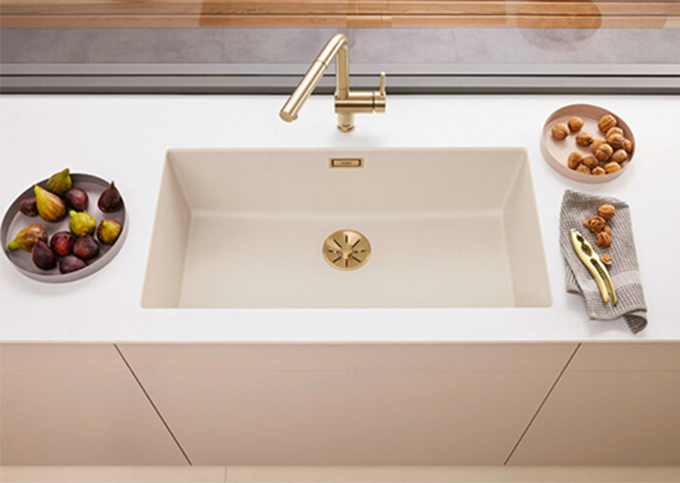 シンクメーカーが作る水栓だから、BLANCOの水栓には他にない魅力が詰まっています。シンクと同色でスッキリコーディネートも、排水パーツと揃えてゴールドやダークスチールカラーでアクセントカラーを楽しむのもおすすめです。