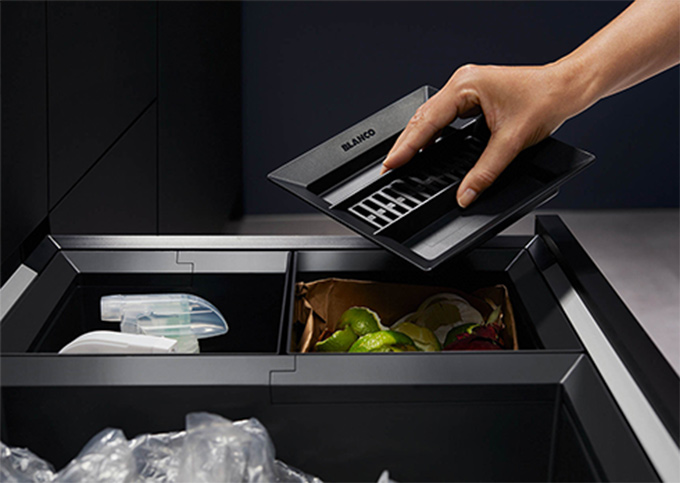 シンク下やカップボードなどの引き出しにダストボックスをビルトインすれば、最短の動線でサッとゴミが処理できます。またスムーズな動線やスッキリした見た目など、素敵なキッチンスペースづくりに貢献します。