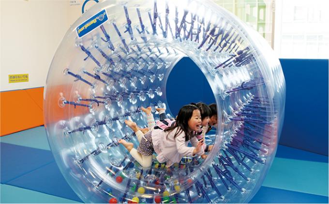 キドキド開業時から大人気の回転遊具です。筒の中に入り、日常生活ではなかなかできない回転する動きを体験できます。透明な遊具なので中に入っても閉塞感がなく、安心してダイナミックなからだの動きにチャレンジできます。