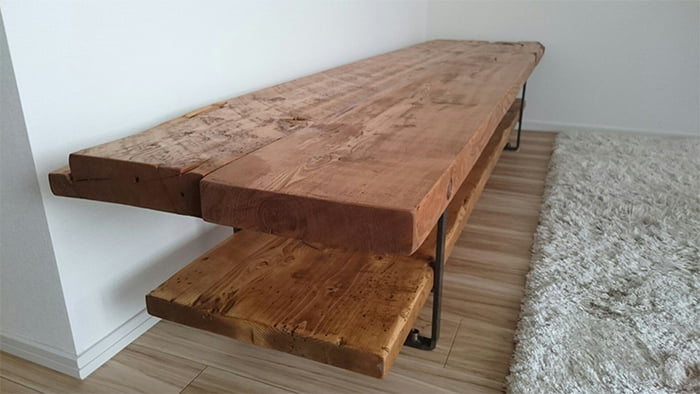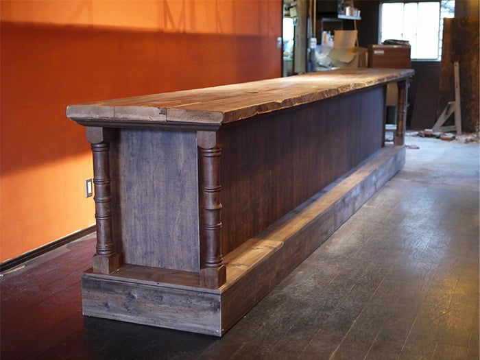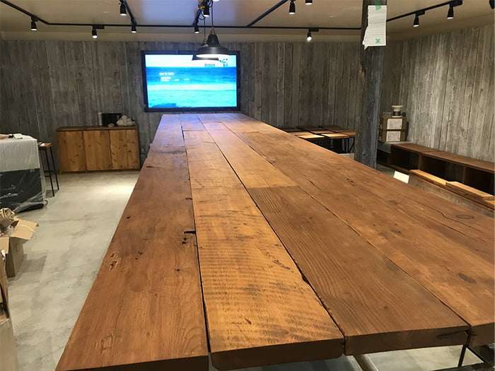 厚さ50mmの力強い存在感で、ダイニングテーブル、カウンタートップ、店舗什器等に最適な古材!