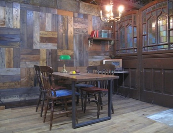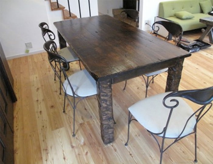 鈍く輝くいぶし濃色ブラウンが、落ち着いた空間演出にひと役買う古材風新材。