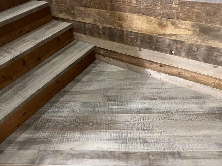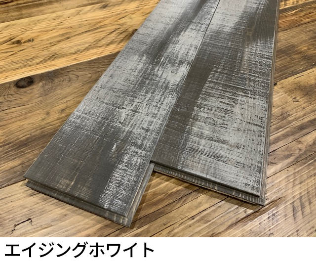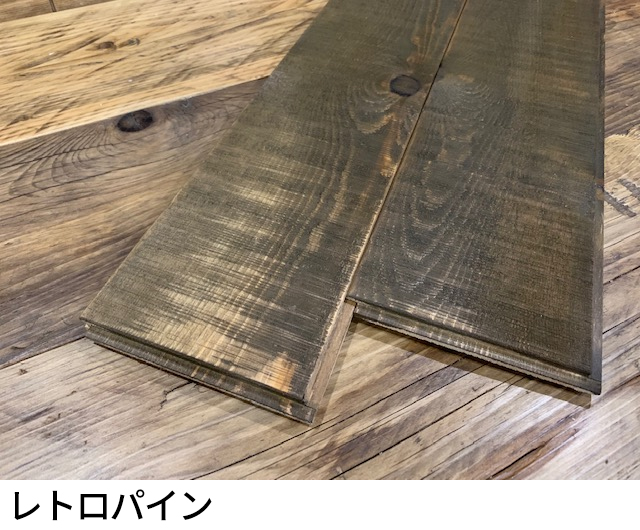 古材風新材のエイジングパイン各色を、フローリングなどで扱いやすいサネ付きに。