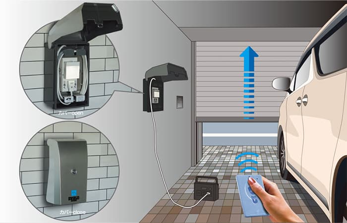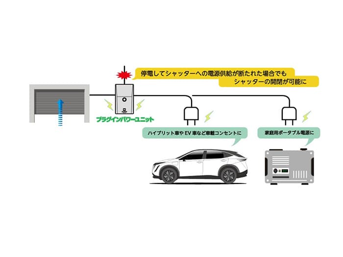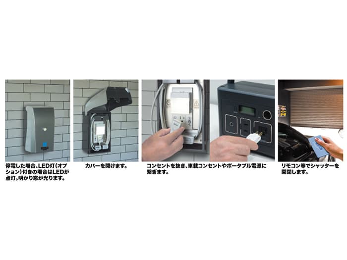 停電時でも電動開閉、災害時も安心。外部電源と簡単接続でシャッターを電動開閉できます