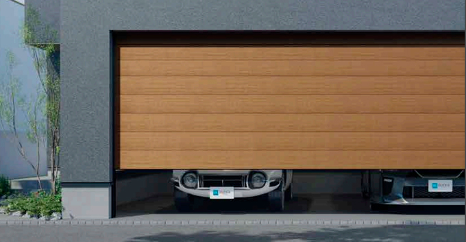 「フラムヴェスタ」は、住宅用オーバースライディングドアとしては初めて車2台分間口サイズの防火設備に対応。フラットパネルがシンプルでありながら重厚なイメージを醸し出し、ガレージの美しさを際立たせます。