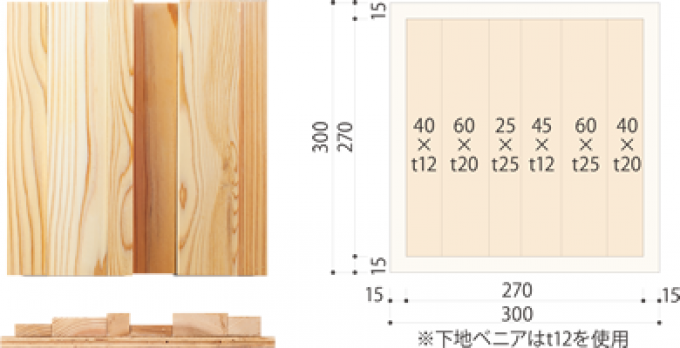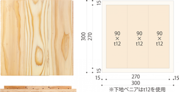 12×90×270の無垢材を貼ったフラットなパネルです。