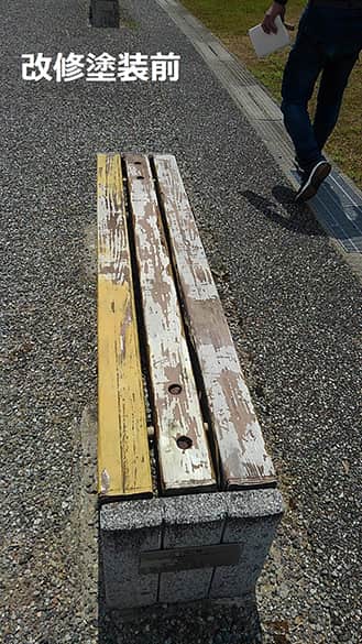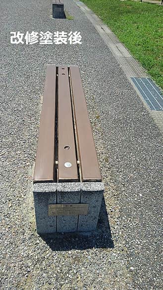 撥水性・耐水性に優れた塗膜は摩耗にも強く屋外のベンチ等にもご使用頂けます。