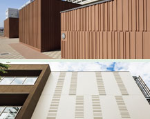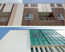 ALCクリオンの「ファッションパネル」は、用途・建物に応じて厚さもデザインも豊富にラインナップ。ALCの持つ基本性能に意匠性をプラスして、表情豊な街並みをつくりだします。