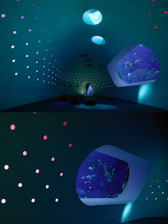 ・情緒あふれるライティングで海の生物に触れ合えます。