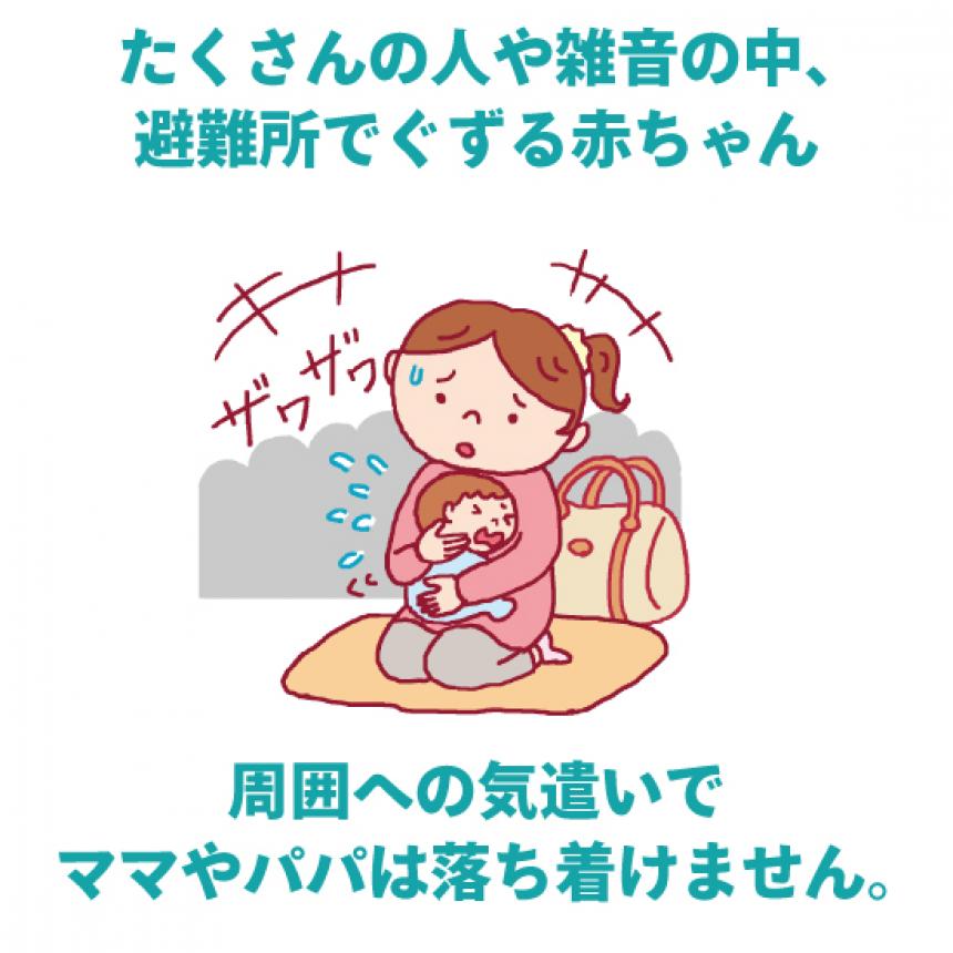 避難所に大人用の段ボールベッドはあるのに赤ちゃん用はないことや、赤ちゃんがぐずり周囲に気をつかうなど乳児連れでの避難は想像以上に厳しく、避難をためらってしまう現実があります。