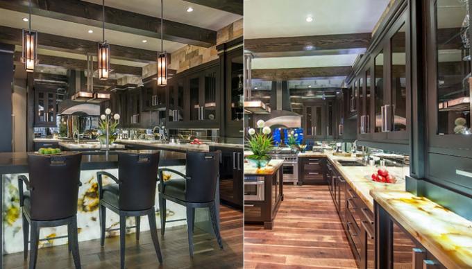 天板に光りを透過させることで高級感なキッチンとなっています。