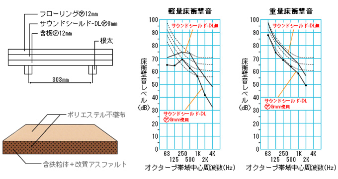 ■子供が走り回る音(重量床衝撃音)や物の落下音(軽量床衝撃音)など、階上で発生する音に対し特に効果を発揮します。
