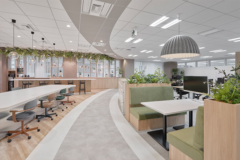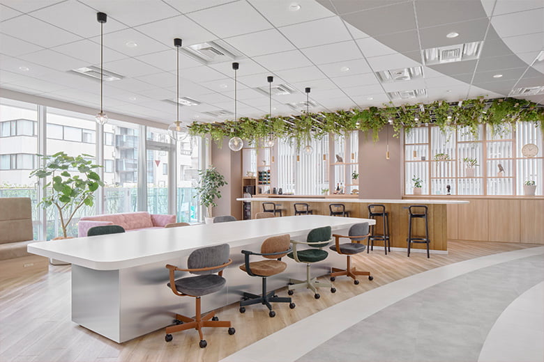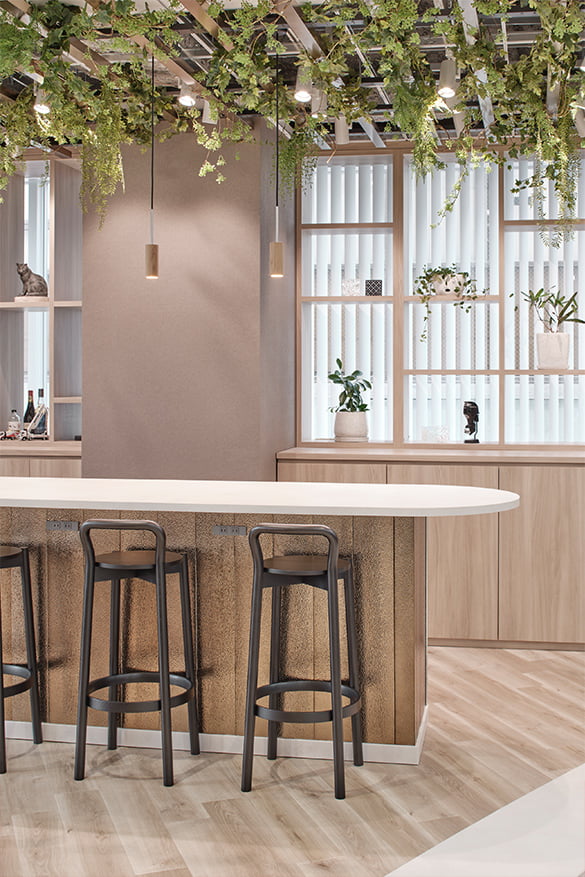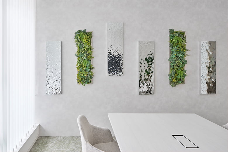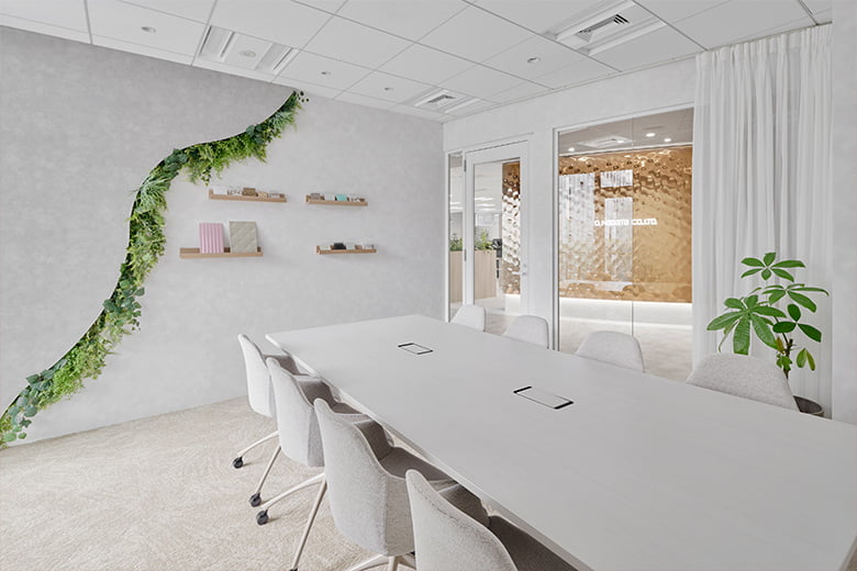 設計デザインの参考にして頂けるように、各所に取扱製品を使用致しました。サンプル帳では伝わらりづらい質感などもご確認頂けますので、是非お気軽にお立ち寄り下さい。