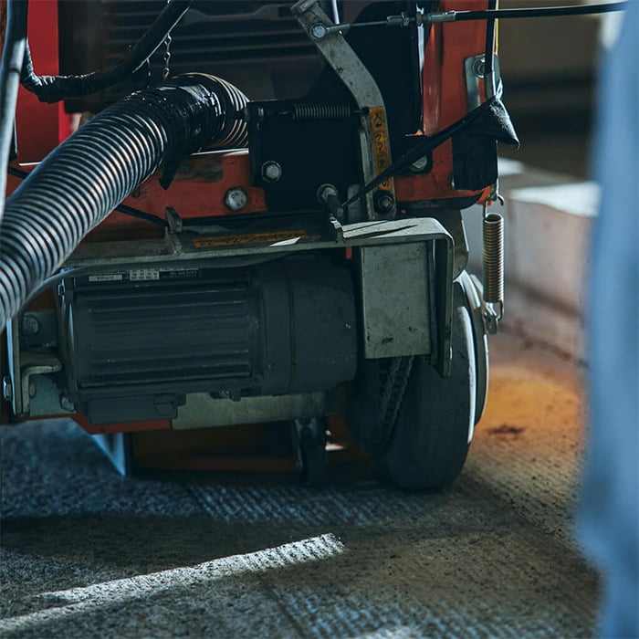 カッターブレードを縦回転させ強力に床面に叩きつけることで、塗膜の除去やコンクリート目荒らし等の表面処理を行います。
