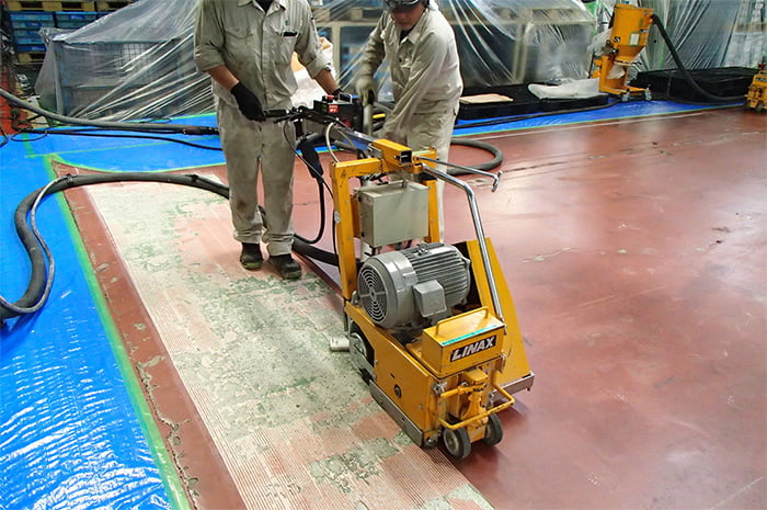 カッタブレードを回転させ、床に叩きつけて塗膜の除去や目荒らしを行います。