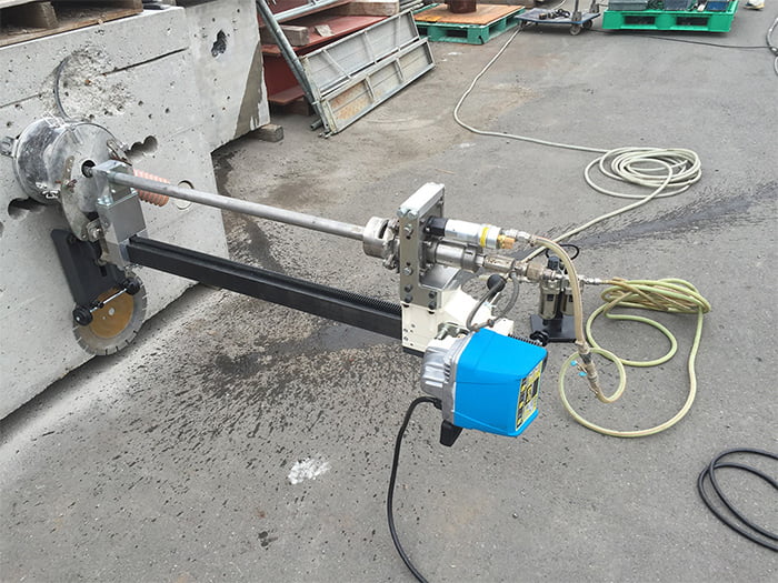 ■横断方向に連続するPC桁の横締めや、橋脚の耐震補強のための水平方向の比較的に長い距離が求められる削孔