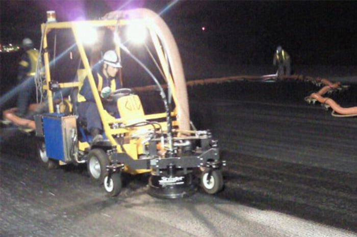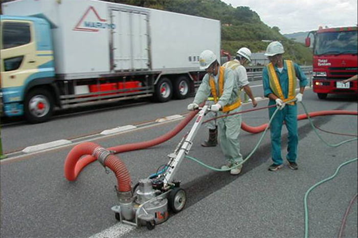 ■高機能舗装の路面をほとんど損傷することなく区画線消去が可能です