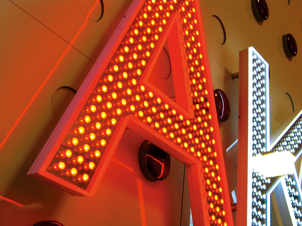 視線を捕らえて離さない…。高輝度LED封入、点発光サイン。